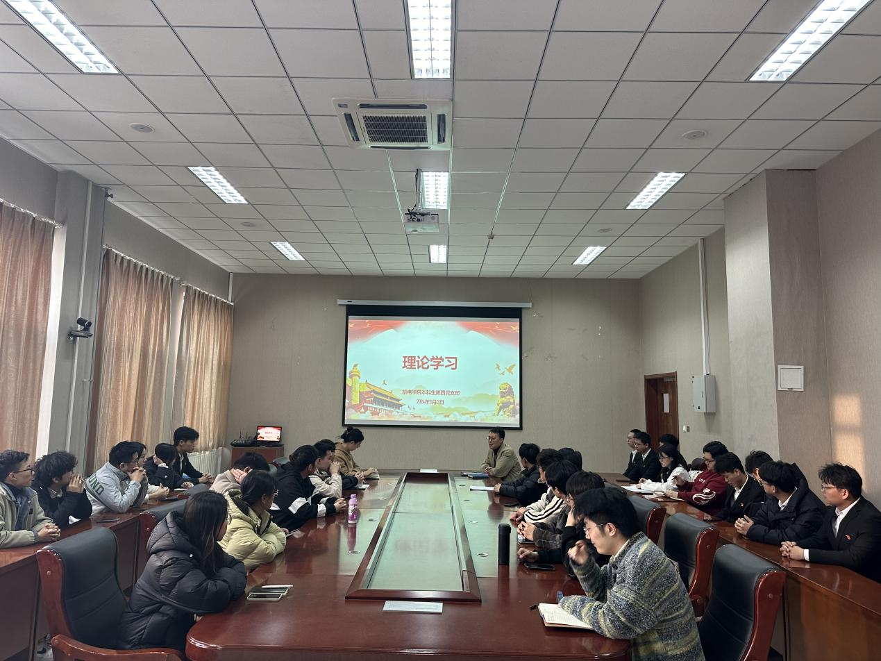 本科生第四党支部于召开集中理论学习会。会议由党支部书记邢坤主持,本科生第四党支部全体党员参会。