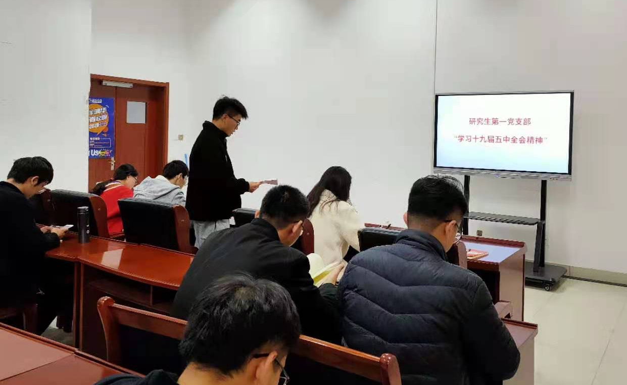 研究生第一党支部在机电楼529会议室开展“十九届五中全会精神”学习交流。
