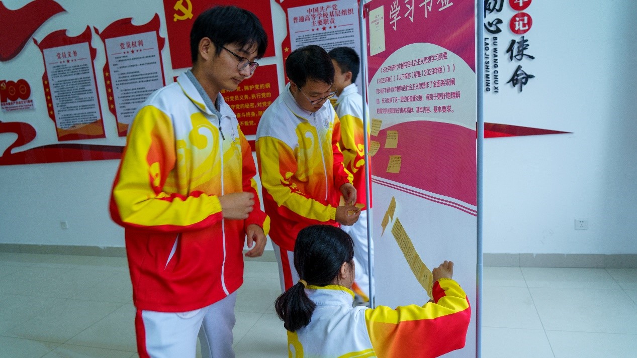 “学思践悟 分享传承”。通过学习会,同学们进一步增强了对习近平新时代中国特色社会主义思想的认识和理解。大家表示:习近平新时代中国特色社会主义思想是我们做好工作、提高自身素质的重要指导,自己将结合实际工作,践行社会主义核心价值观,用实际行动为实现中华民族伟大复兴的中国梦贡献力量。他们纷纷将自己的所学、所感、所悟写下来贴在“流动书签”上,将自己的所思所想传递给学院百余个团支部,与大家共同分享交流。