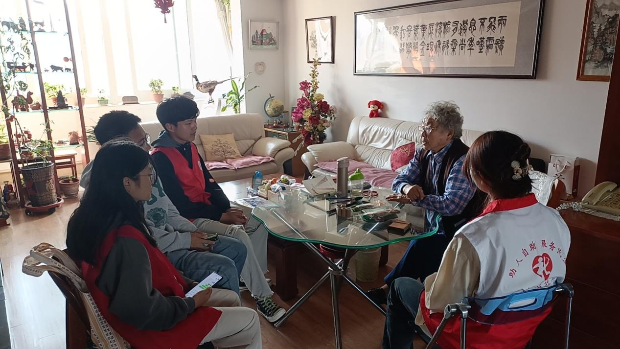 在这个特殊的节日里,青岛科技大学微尘志愿者协会成员同社工站工作人员为营造养老、孝老、敬老的社会环境而努力,切实增强了老年人的获得感、幸福感、安全感。活动中,青岛科技大学微尘志愿者协会会员与社工站工作人员分组入户,走访了以范玉芬老人为代表的病症患者和以郑文彪老先生为代表的退休老人,了解了他们的身体状况和生活情况并倾听了他们的诉求。大学生志愿者通过采访的形式与老人进行互动,提升老人的自我价值感。