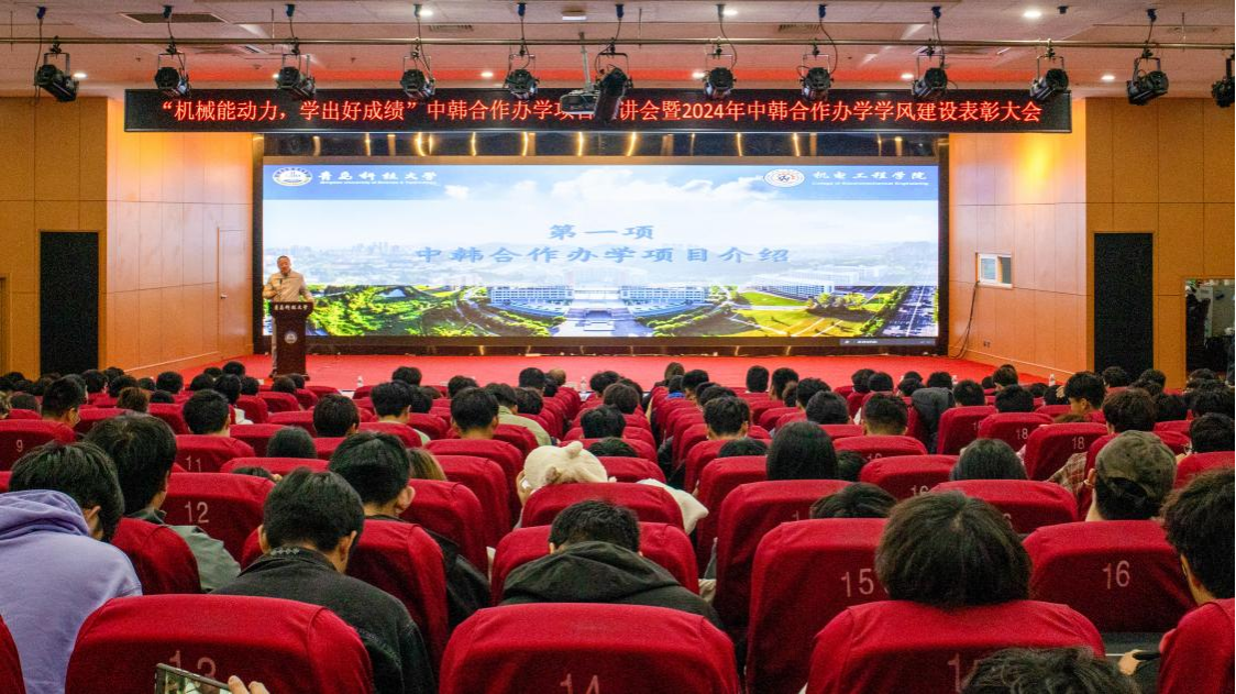 “机械能动力、学出好成绩”中韩合作办学项目学风建设表彰大会在第三报告厅召开。学院党政领导、评建办主任、韩语教研室、班主任、辅导员、2023、2024级中韩合作办学专业全体学生300余人参加活动。