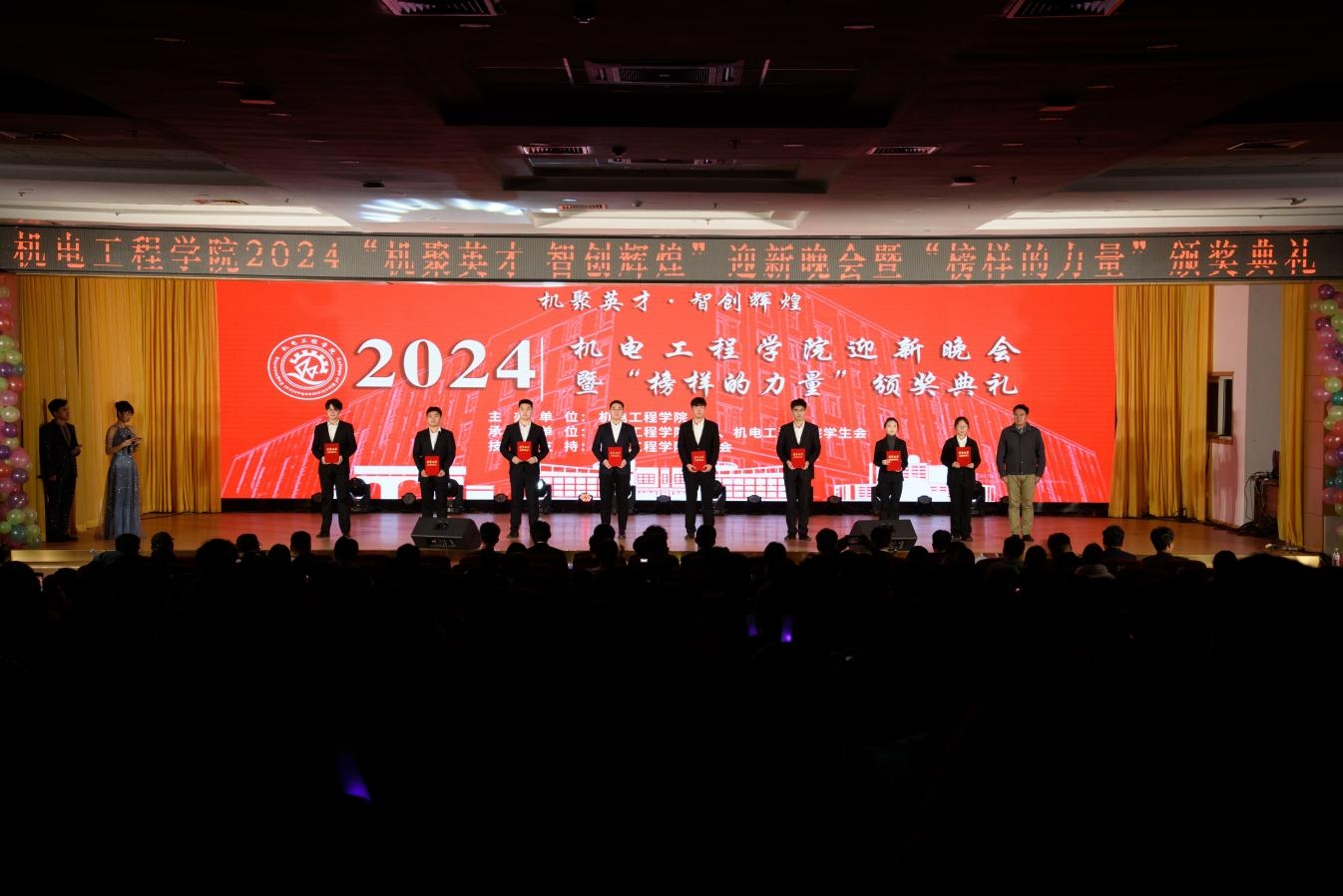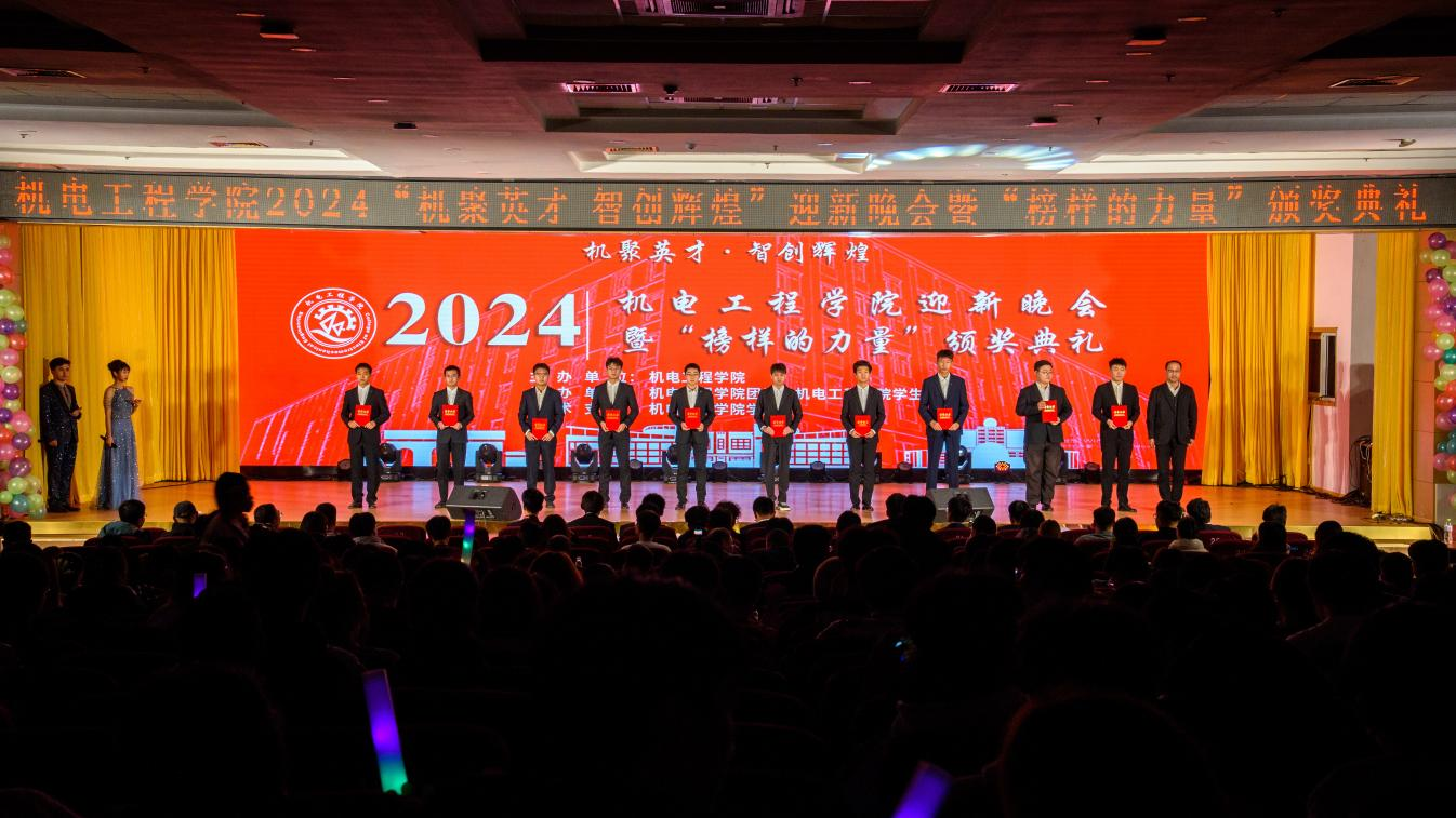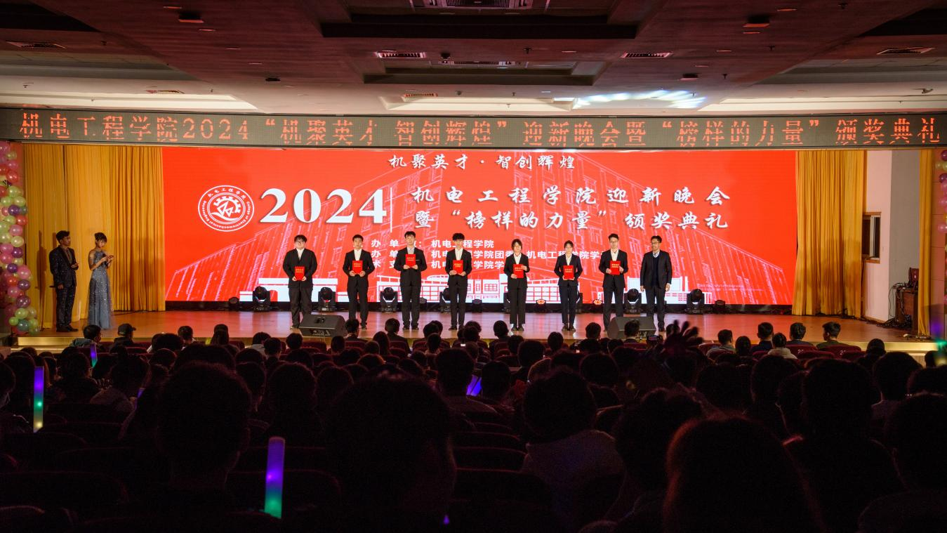 2024“机聚英才·智创辉煌”迎新晚会暨“榜样的力量”颁奖典礼在崂山校区第二报告厅举办。学院党委书记任允晓、党委学生工作部副部长李春家、校团委副书记李浩、学院副院长杨化林、学院副院长李剑光、学院党委副书记兼副院长杨小明、各兄弟学院团委书记代表以及全体团委老师和2024级全体新生参加晚会。