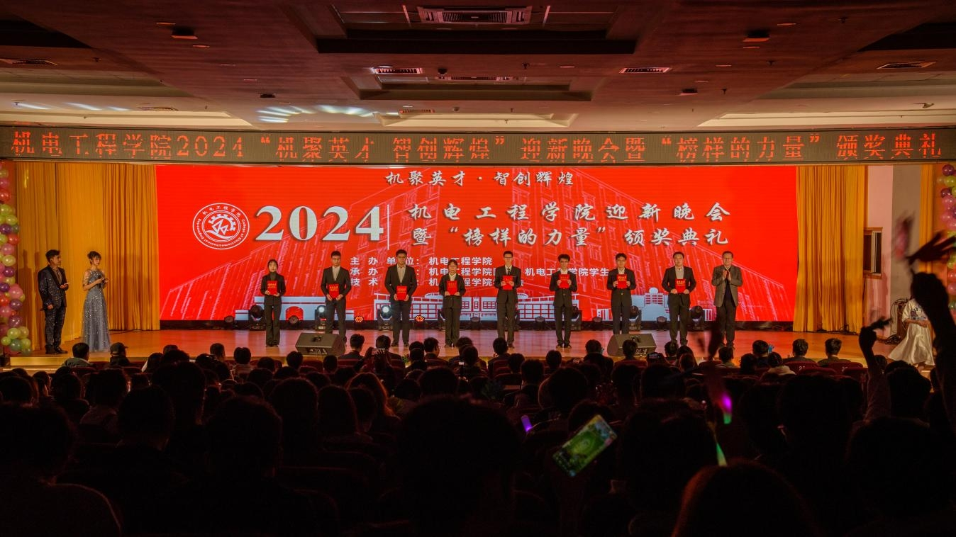 2024“机聚英才·智创辉煌”迎新晚会暨“榜样的力量”颁奖典礼在机电师生的欢歌笑语中圆满落幕。机电师生将继续秉承“明德、笃学、弘毅、拓新”校训,用行动践行“橡胶品格”,发扬“科大精神”,贯彻“五有”理念。机电学子也将以本次迎新晚会为起点,继续在未来书写勇毅篇章,以饱满的热情投入学习与生活,追逐梦想,一往无前。(一审:宋达,二审:周韫涵,三审:杨小明)