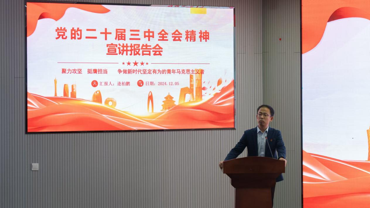 12月5日,电子游戏推荐 于530会议室开展“青马工程”培训,本次培训以“聚力攻坚,挺膺担当”为主题,由学院团委书记逄柏鹏老师做党的二十届三中全会精神宣讲报告,“青马工程”培训班学员参会。