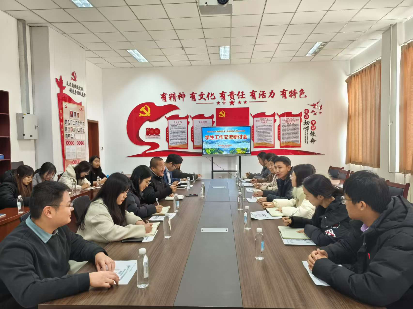 交流会上,杨小明、贾明明分别介绍了学院学生工作的基本情况,分享了学生教育管理服务工作的特色做法和典型经验,同时,讨论了揭榜挂帅项目的建设思路及进一步的任务分工,并就思想政治教育研究、学院特色品牌工作和项目建设思路等进行了深入的交流探讨。