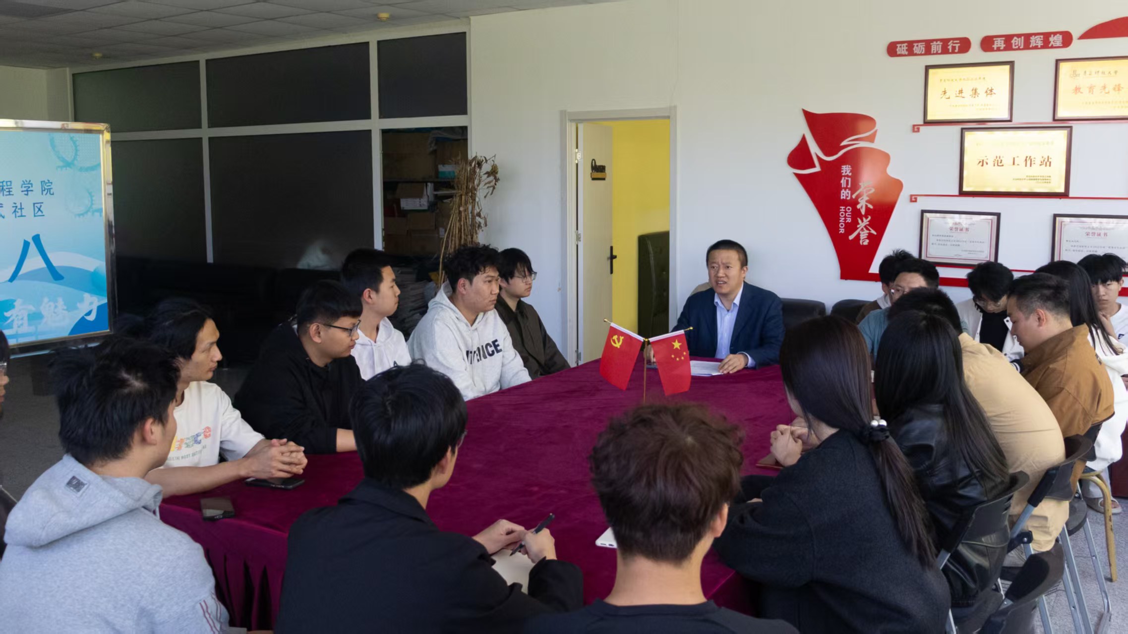 在北2宿舍楼“一站式”学生社区学业发展中心开展“机械能动力、宿舍有魅力”宿舍建设研讨会。学院党委副书记杨小明、各年级主任,党员宿舍、优秀宿舍、全体不合格宿舍代表37人参加研讨会。