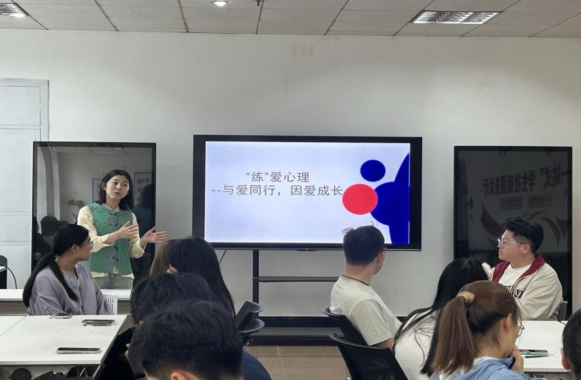 刘璐将专业理论转化为生活恋爱的引导方式,通过阐述“埃里克森人生发展八阶段”理论和“爱情三角理论”理论,引导学生科学理解恋爱和亲密关系,也为后续“爱的沟通”“情感表达”等环节做好了充分的心理铺垫。在互动交流环节,刘璐请每位同学写下自己在恋爱中遇到的困扰,并在小组内分享。各小组围绕恋爱困扰展开热烈讨论,筛选出相对共性的问题,探讨解决方法。学生各抒己见,在思维的碰撞中,不仅增进了对恋爱关系的理解,还收获了许多实用的恋爱沟通技巧与心理调适方法。
