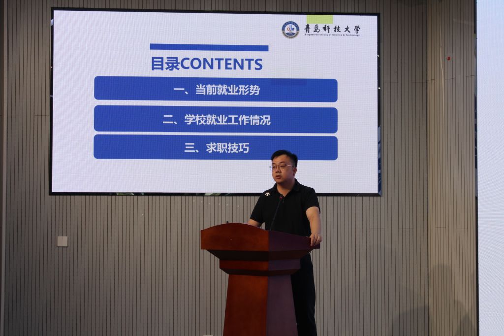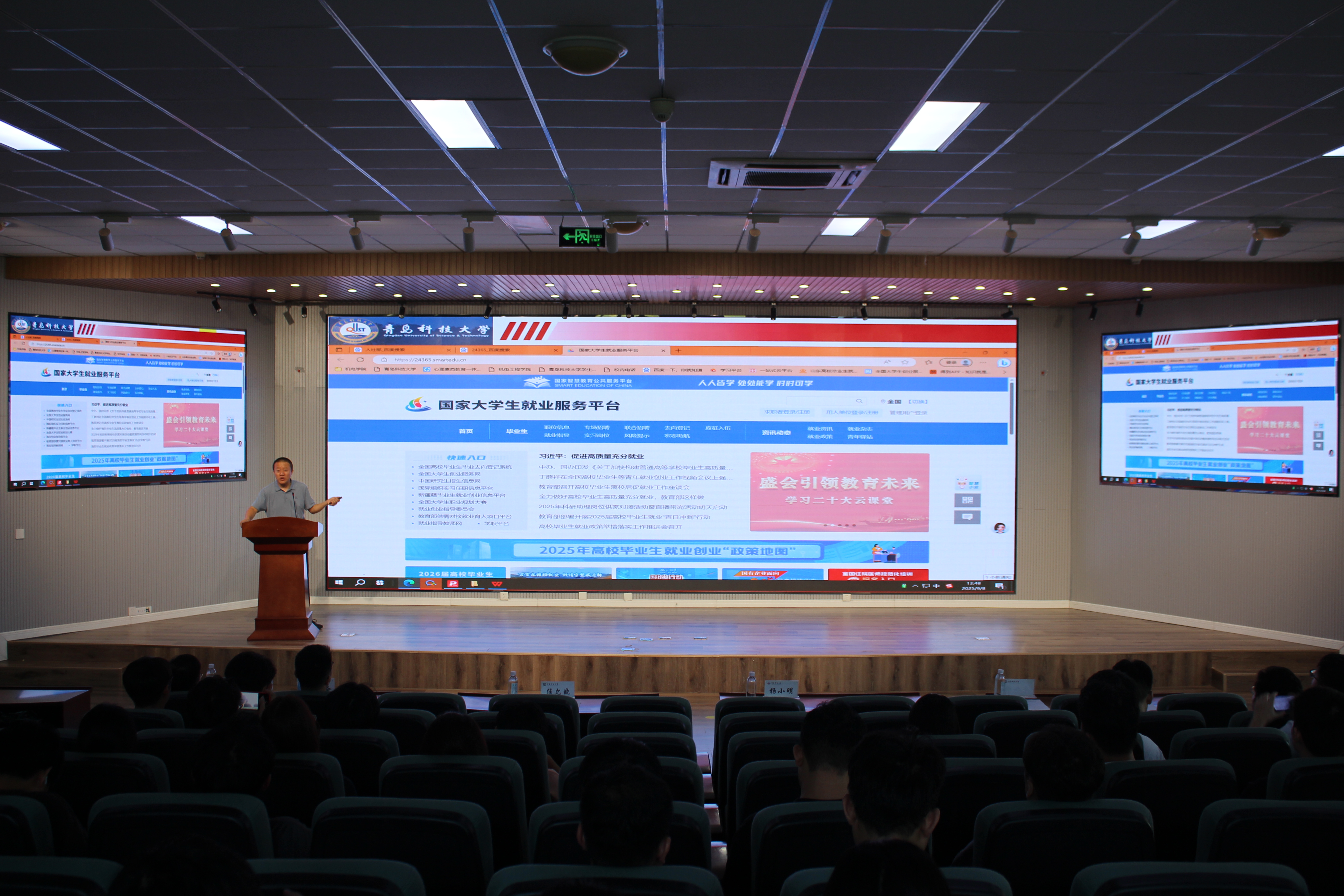 孙一君“就业形势与求职指导”为题,从当前就业形势、学校就业工作情况、求职技巧三个维度进行分享。孙一君首先结合国家及山东省关于高校毕业生就业的最新政策,强调“稳就业”“保就业”的政策导向。孙一君通过详实数据指出当前就业市场的整体态势,介绍了青岛科技大学2024届、2025届毕业生就业整体情况,尤其是电子游戏推荐