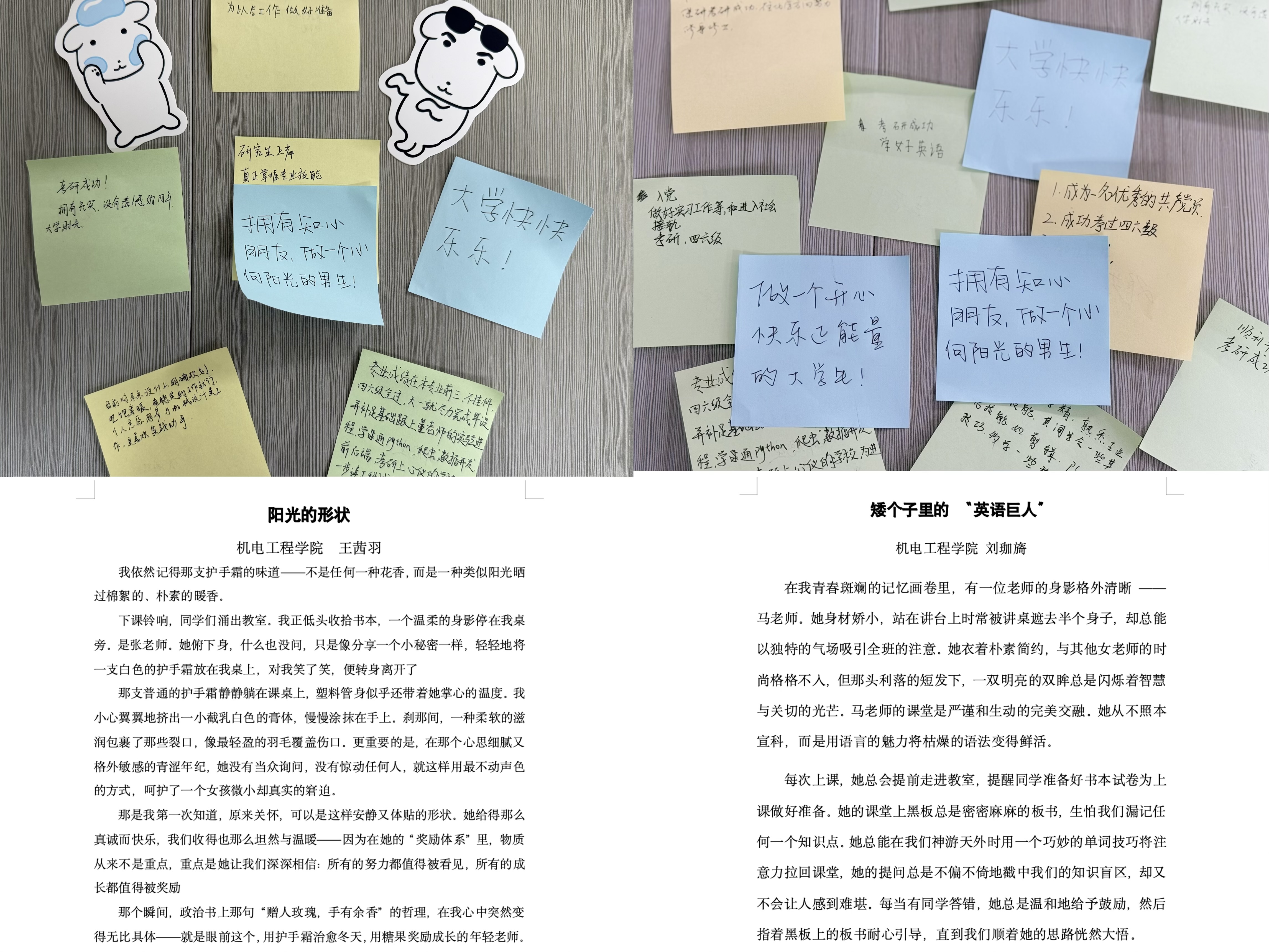 活动开始,“时光寄语、心语传递”手写便利贴活动吸引同学参与。现场提供米黄、米白、浅蓝等色彩的便利贴。同学们满怀真诚,将想对自己说的话认真书写下来,这些承载着不同心境的便利贴被悉心收集起来,将在未来某个特定时刻,为同学送上一份温暖的惊喜与感动。同时,为进一步加强师生间的情感,学院开展短文和手写明信片征集活动,分享与老师的温馨时刻和暖心故事,诉说心中的浓厚感情。