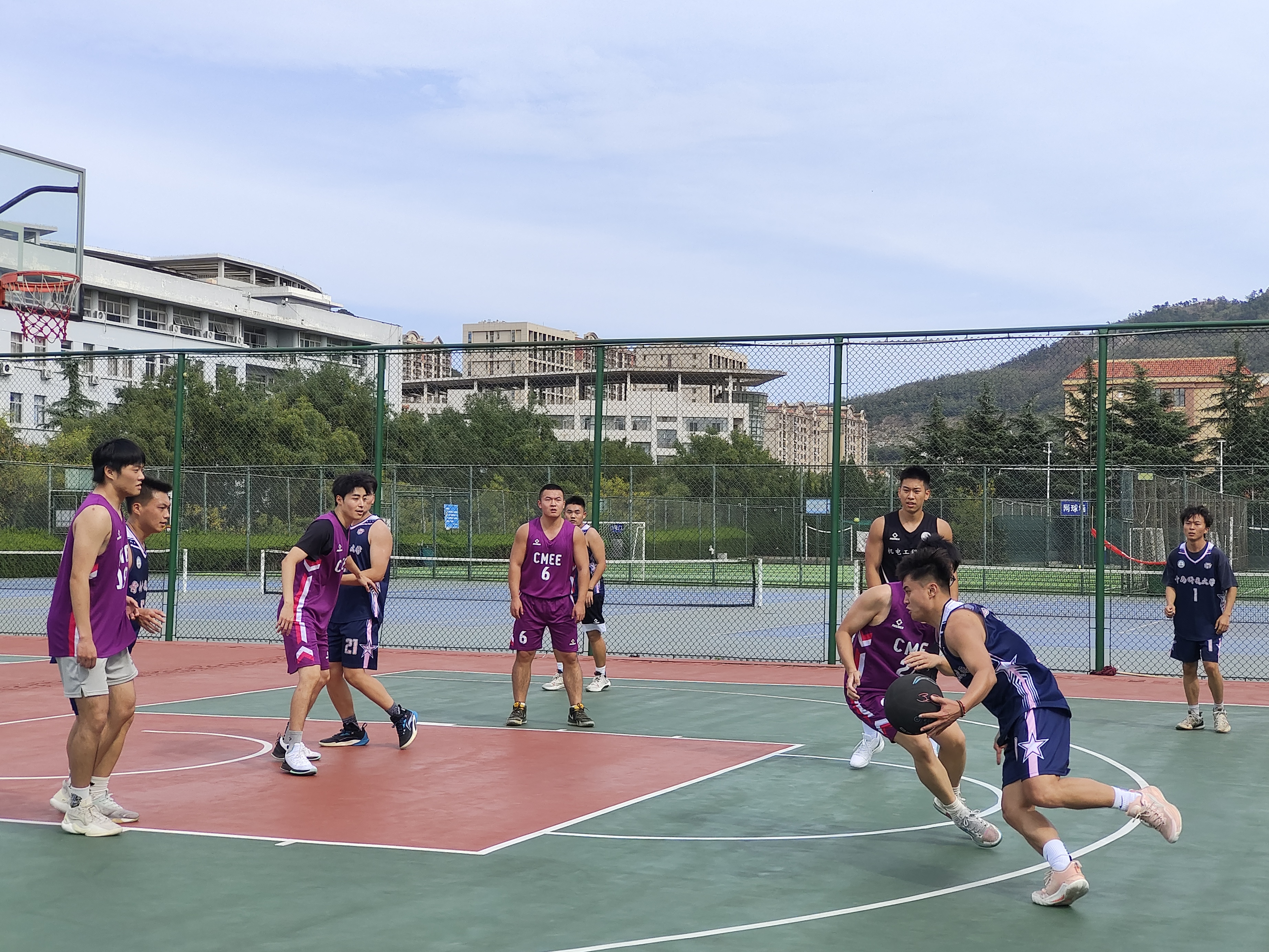 第一天小组赛阶段,各班级球队纷纷展现出了顽强的斗志和精湛的球技。研一1、2班与研三的对决中,双方球员你来我往,互不相让。研三的队员们配合默契,多次通过精彩的传球和犀利的突破得分,而研一1、2班也不甘示弱,他们在防守端全力以赴,同时在进攻端寻找机会反击。场上比分紧咬,比赛紧张激烈,引得观众们阵阵喝彩。