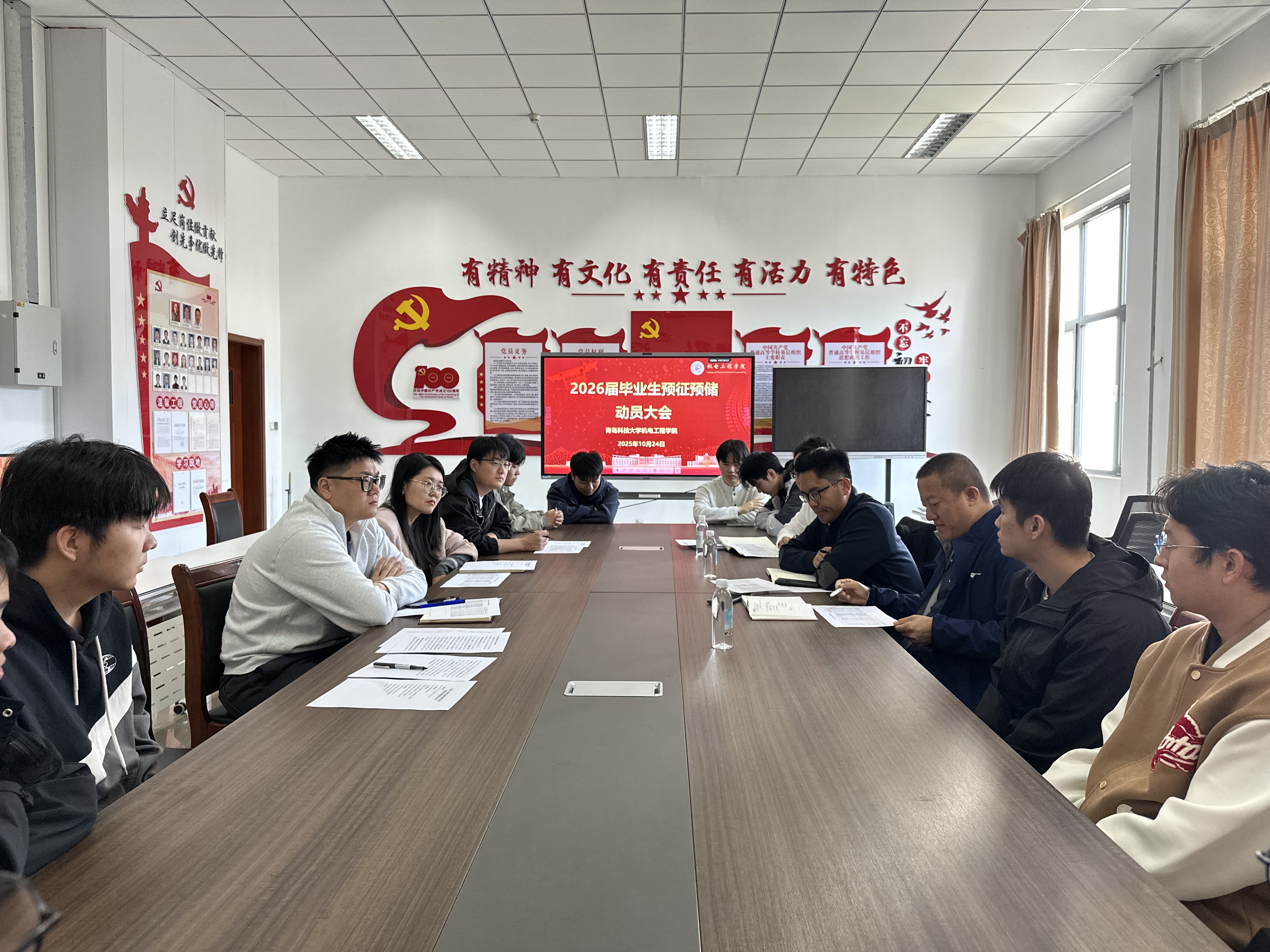 在机电楼529组织开展征兵工作座谈会。党委学生工作部、武装部副部长李春家、学院党委副书记杨小明、2026届毕业生辅导员、退役大学生士兵代表刘易以及有意向应征入伍的同学参加会议。