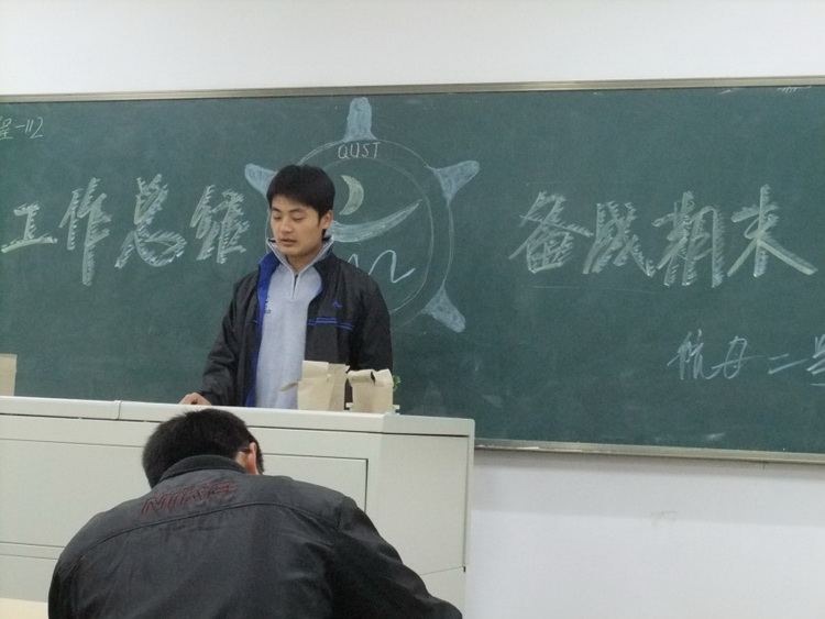 班会由班长刘德良主持。首先,刘德良总结了前一阶段班级工作情况及在学院活动中取得的成绩。随后,同学们依次上台,自由发言,针对即将来临的期末考试,对各自前期学习中产生的问题和困惑进行发言,同学们各抒己见,互相交流彼此的学习心得,班会的现场气氛异常活跃。最后,团支书张海磊发言,他对不同的学科向同学们简单讲述了自己的复习方法以及应试技巧。他说,在期末考试复习的过程中,同学们要讲方法、讲效率、重心态,轻松上阵,在复习的过程中要抓住重点,并倡导全班组建“一帮一”学习互助小组,以达到互帮互助,互相进步的目的。他的这一想法得到了班级大部分同学的肯定。最后,秦洪庆老师作总结,他希望同学们端正学习态度,提高学习能力,抓紧一切时间努力学习,不断提高自己。要求广大同学树立良好学风,端正学习态度,自觉遵守考场纪律,诚实守信,积极备考,自尊自律,拒绝作弊。