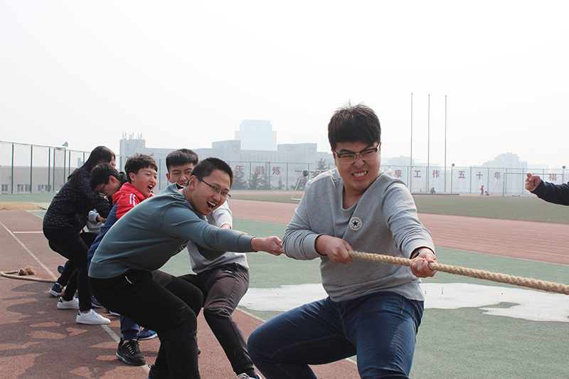 此次拔河比赛共有35个班级参加,由每班派一支参赛队伍,每队十人,九男一女。下午一点半比赛正式拉开序幕,这是一场力量的考验,在这场激情的拼搏中,赛场上每一个人的心都系在一根绳上。当比赛的哨声响起,队员们使出浑身力气把绳子向后拉,绳子中间的红线左右摇摆。两边队员都整齐地往后倒、向后退,同学们在队伍旁边助阵加油,恨不得抓起绳子和学生一起努力。体育场上呐喊声此起彼伏,参赛的同学们努力拼搏,无论是场上还是场下,气氛都异常紧张,富有节奏的呐喊声、加油声,充斥在体育场的上空,久久回荡。同学们毫不退却,咬紧牙关,坚持到底,赛场上的他们个个斗志昂扬,脸上坚毅的表情阐述着团结的含义,他们顽强的毅力与拼搏的精神感动着在场的每一个人。此次拔河比赛的参赛队伍都本着“友谊第一,比赛第二”的宗旨赛出了水平,赛出了风采。最终,Alps172、能源172、新能源171等16个班级晋级。在全体同学的积极配合下,本次拔河比赛初赛取得了圆满成功。