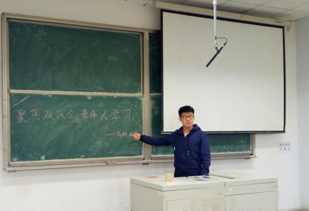 分团委组织部以“双代会、青年大学习”为契机,在大二35个团支部中,展开由团支书组织、带领班级同学认真学习贯彻习近平总书记于5月4日同各界优秀青年代表座谈讲话的活动,以及唱团歌、学团章、学习三会两制一课制度、重温入团誓词、我与团旗合影等一系列活动。