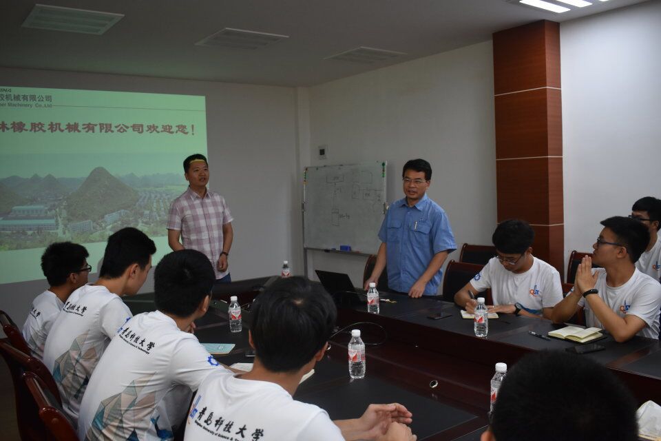 2018年7月24日,青岛科技大学赴桂林橡胶工业设计研究院“英才工程师”实践团赶赴桂林橡胶机械有限公司进行参观学习。