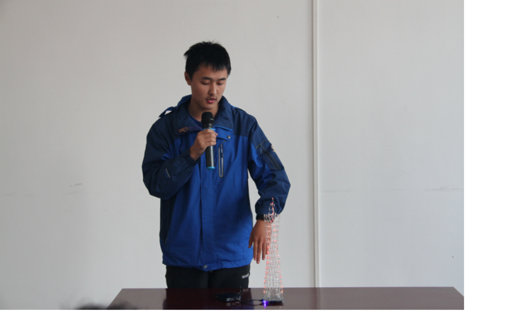 此次活动首先是三个焊接小组成员对自己的产品进行描述并分享自己在焊接过程中的感受与心得,评委对其表现进行打分。在评委的提问互动环节中,同学们积极发言、热情回应中将整个活动推向了高潮。