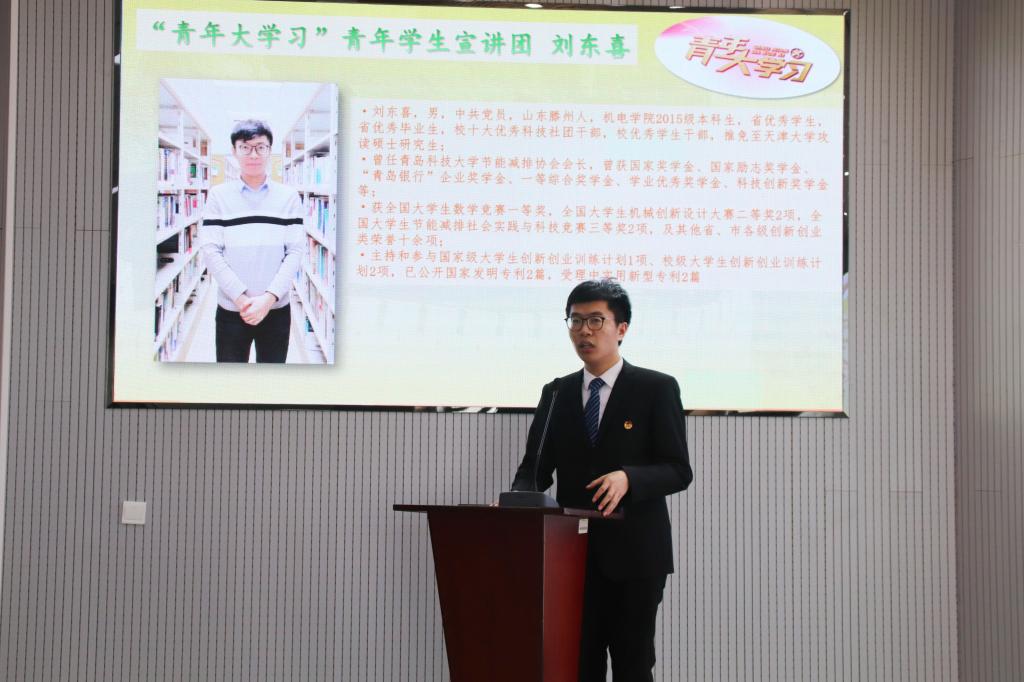 宣讲会上,张旭同学结合自己的学生会干部经历告诉大家及时找寻目标,树立人生方向;刘东喜同学结合自己丰富的科技创新经历,告诫大家要志存高远,勇攀高峰;王景雯同学讲述了自己的研究生支教团、志愿服务工作经历鼓励大家脚踏实地,不负韶华,做有责任、有担当的新青年。
