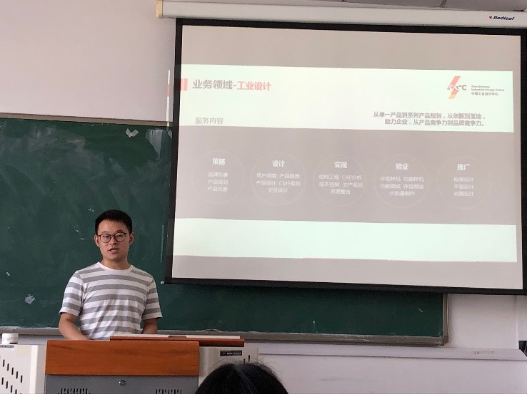 郑炳华首先介绍了中德工业设计中心的概况,围绕着工业设计助推山东省新旧动能转换,分享了工业设计在高端装备、医疗器械、智能家电等行业的优秀案例,并分别就工业设计在创造革命性产品、打造全新产品线、创造差异化竞争策略以及提升品牌识别度等方面介绍了具体的设计方法,并针对用户体验和设计机会识别等方面分享了洗衣机和母婴产品的设计流程。讲至部分细节处,学长细心地解释各种技术应用,李老师也及时作出补充解释。期间,同学们踊跃提问,积极探讨本专业同学们关心的问题,包括专业较为前瞻性的研究问题。