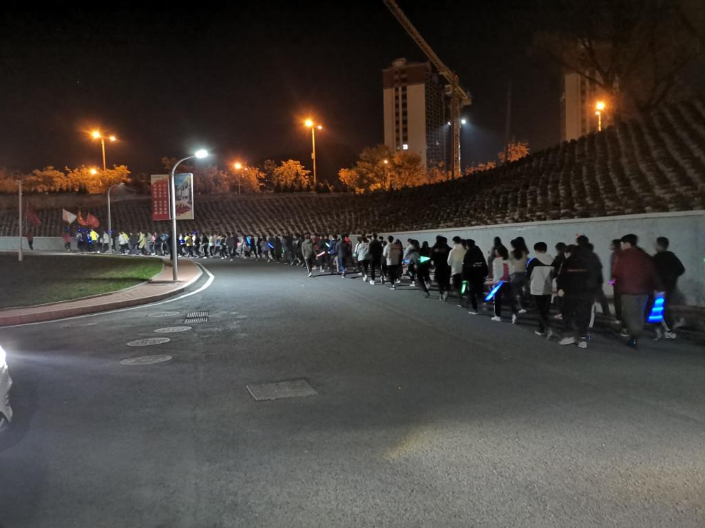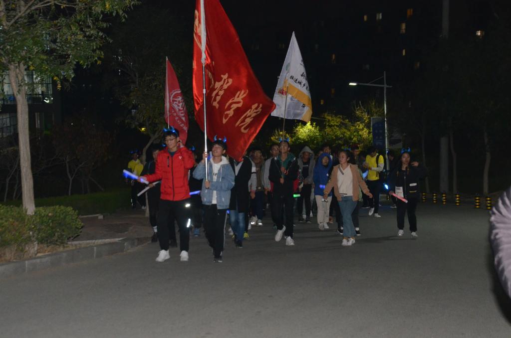 分团委志工部青尘义工队在青岛科技大学崂山校区举办了一场公益荧光夜跑活动。