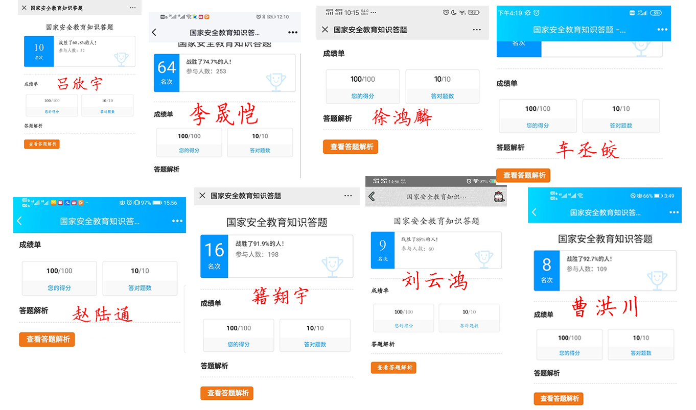 学生会利用微信和大学生在线平台组织全院学生参加国家安全知识专题网络知识竞赛,以赛促学,不断推动国家安全知识入脑入心。