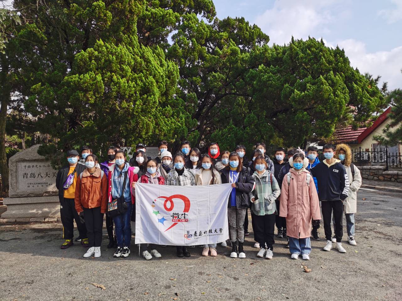 团委志工部微尘志愿者协会组织志愿者前往八大关风景区进行清理活动。