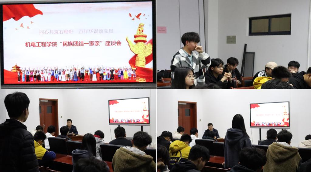 在机电大楼529会议室召开以“同心共筑石榴籽,百年华诞颂党恩”为主题的“民族团结一家亲”座谈会。院学工办辅导员老师、学生代表和少数民族同学代表参加会议。