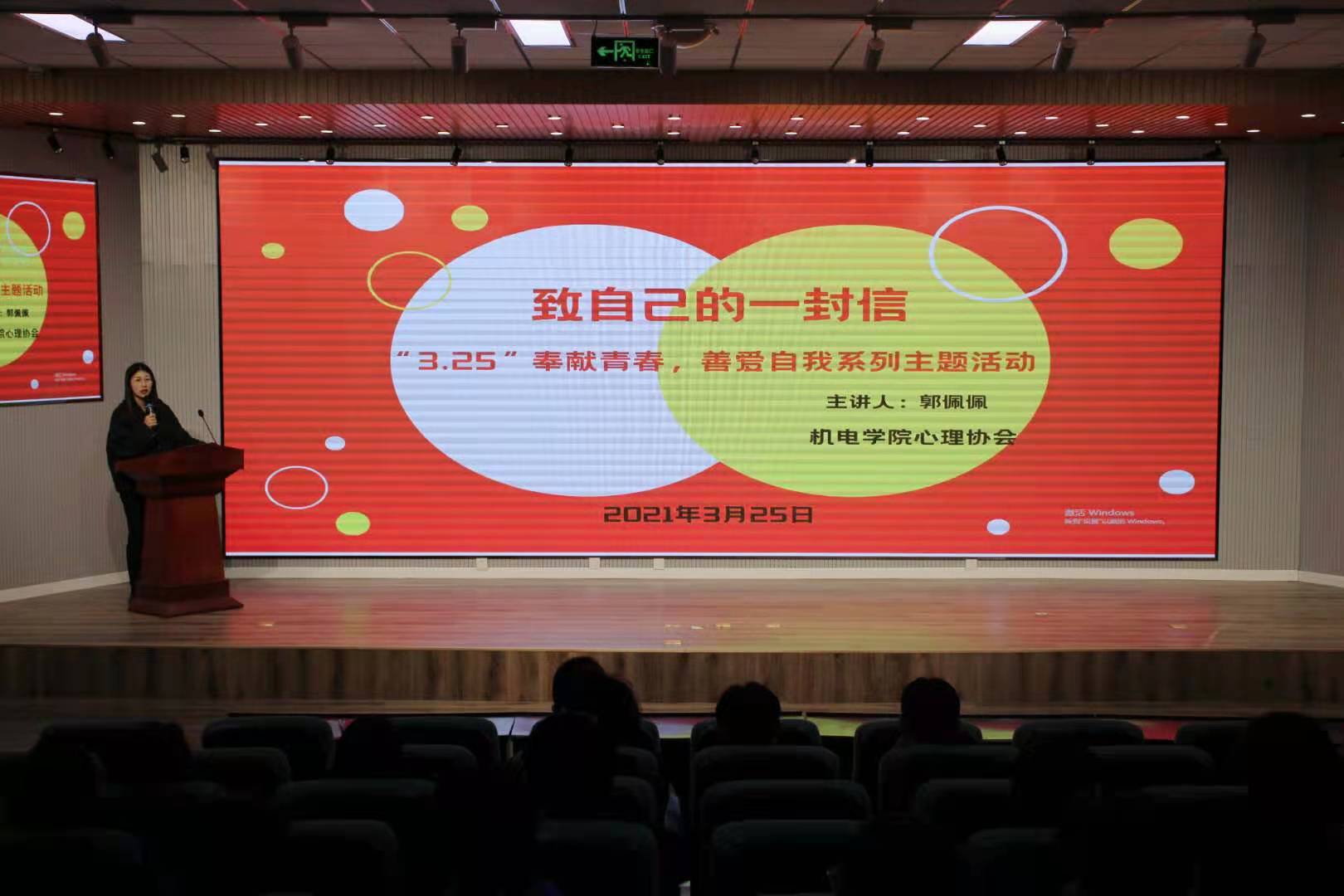 开展了“致自己的一封信--3.25奉献青春,善爱自我”系列主题活动,会议由心理工作站站长郭佩佩老师主持。