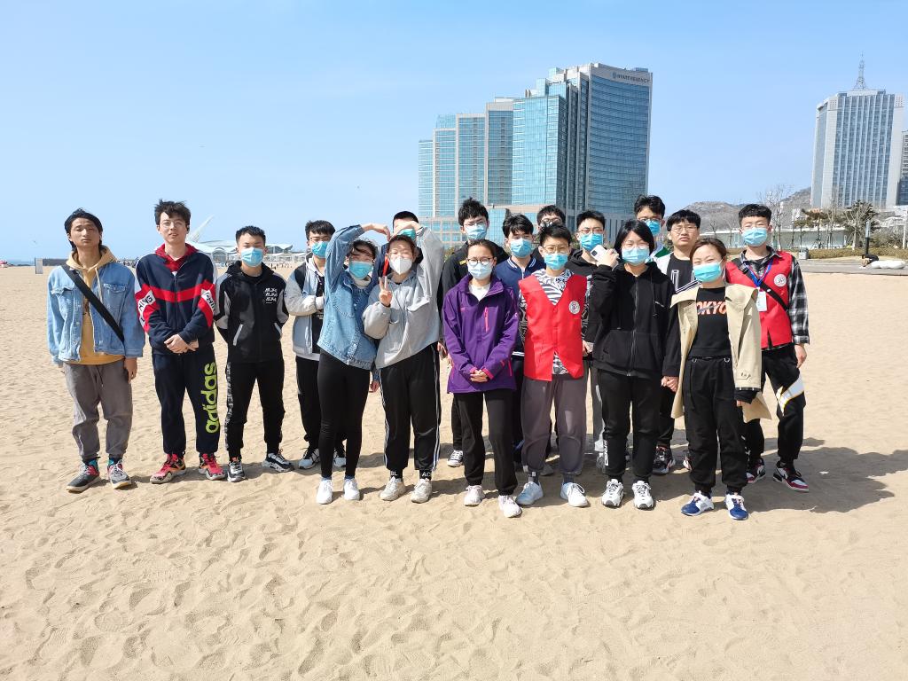 团委志工部组织的“班级义工队”系列活动之一的石老人海滩清扫活动。