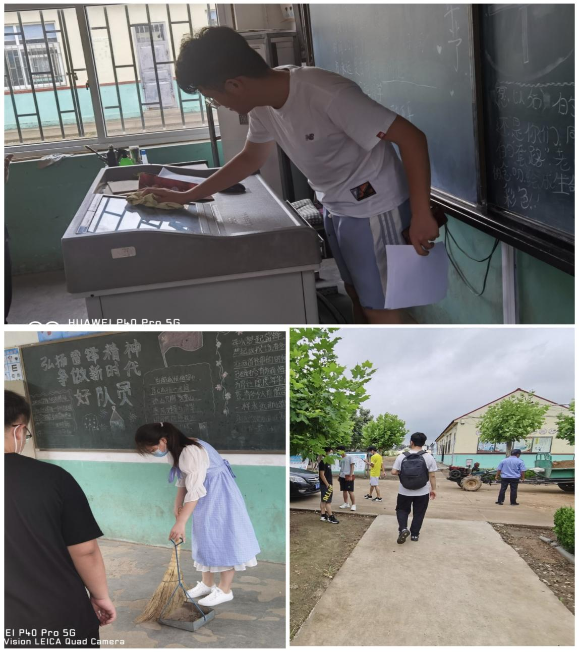 最后,团队认真地打扫了金口店东屯小学的卫生:清扫教室、擦拭多媒体等教学用具、整理学校的室外物品等。以实际行动展现了当代大学生良好的精神风貌,为孩子们树立榜样形象。