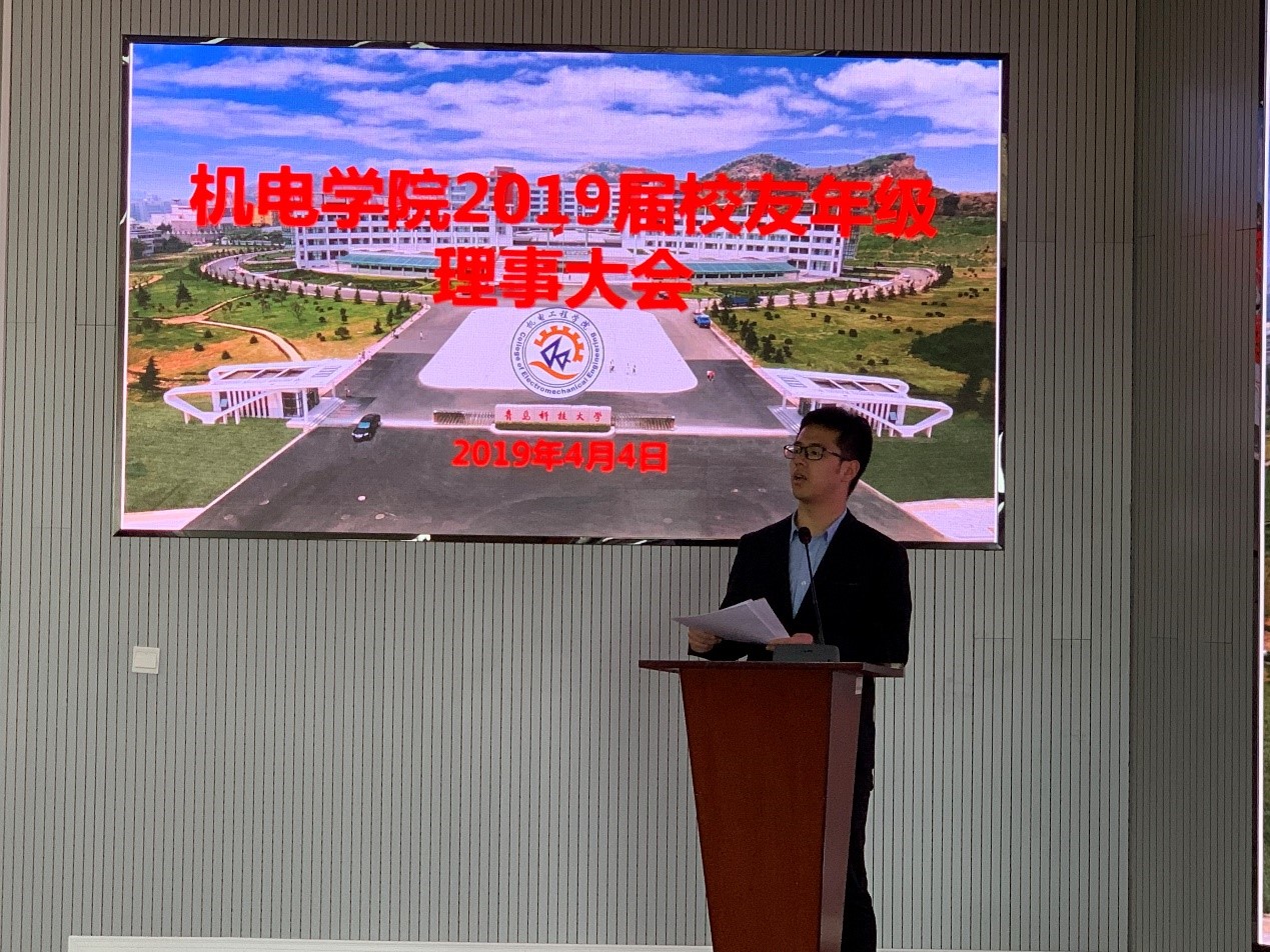 2019届毕业生辅导员曲智强老师、郭佩佩老师、2019届校友年级理事会全体成员出席了会议,会议由曲智强主持。