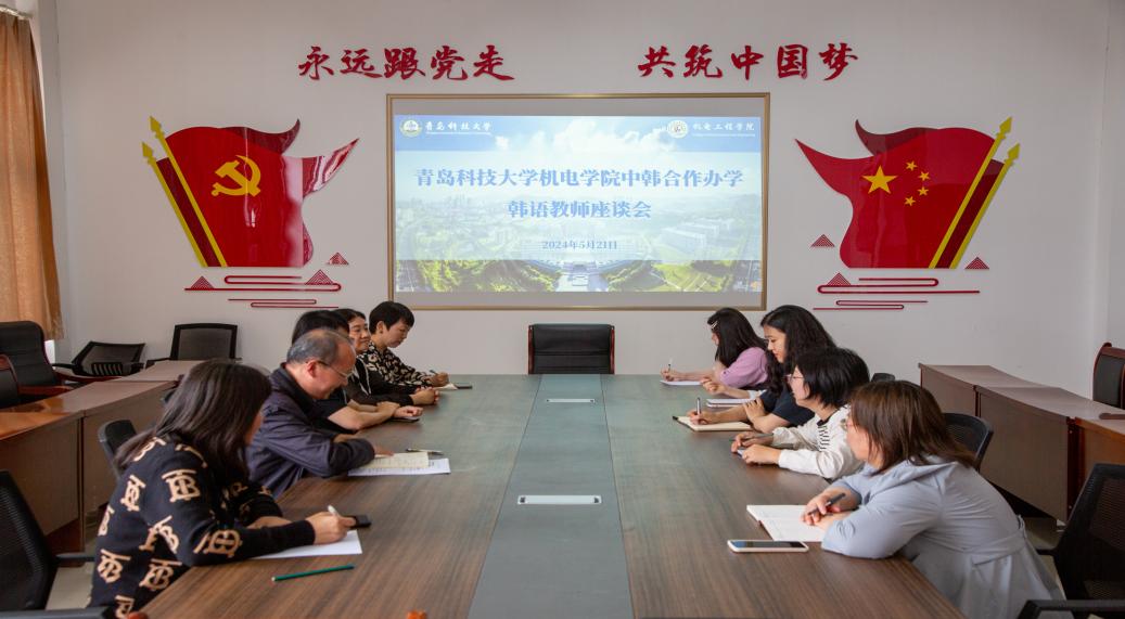 电子游戏推荐 于5月21日下午召开中韩合作办学韩语教师座谈会,本次交流会旨在加强韩语教师之间的教学经验分享,提高韩语教学质量。电子游戏推荐 副院长杨化林、评建办主任付平及学院中韩合作办学项目韩语教师参与本次会议。