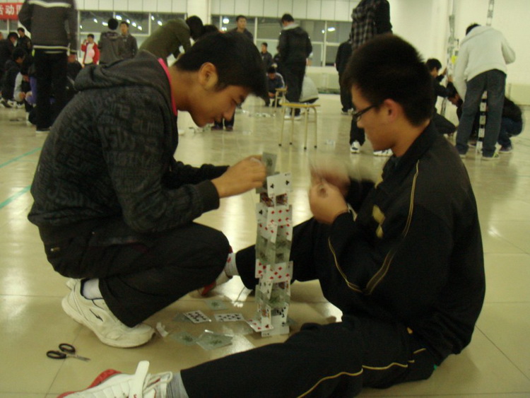 为了弘扬科学精神,激发科学兴趣,培养同学们动手、动脑能力和创新精神,11月15日晚19:00,由电子游戏推荐 科技创新协会主办的趣味扑克牌搭塔比赛在高密校区惠众餐厅二楼举行。