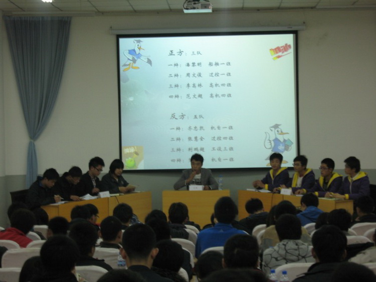 11月27日晚19:00,由电子游戏推荐 学生会主办,工业设计113班承办的电子游戏推荐 2011级年级辩论赛决赛在高密校区通德会堂202举行。